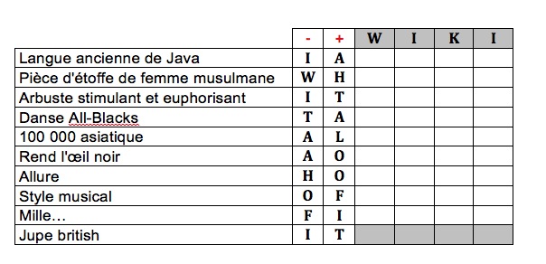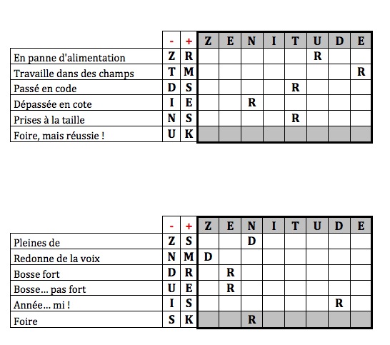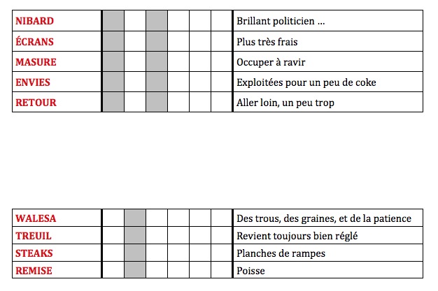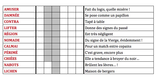 Une première grille parue dans le fascicule de présentation de ces 10 mots : la grille et la solution