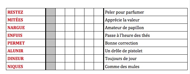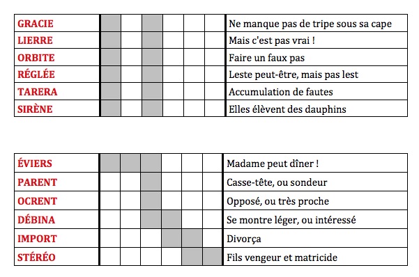 Toutes les grilles, mots à placer jeux de mots.