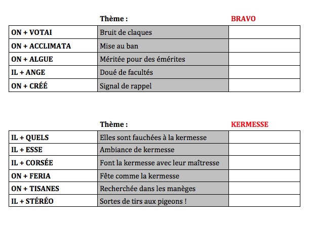 Mots à placer |