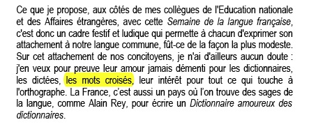 Dès octobre 2011, nous proposons sur notre site et celui du ministère des grilles de mots à croiser sur le thème des 10 mots de l'année.